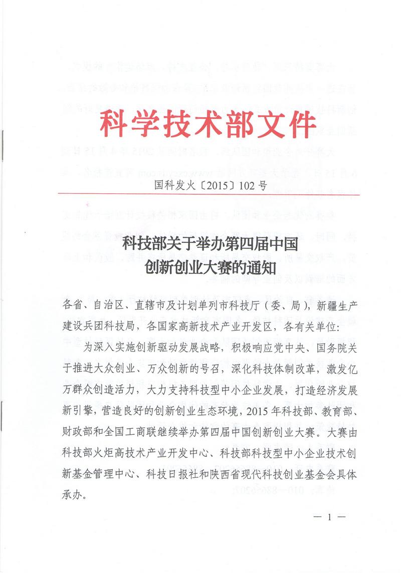 附件: 科技部關于舉辦第四屆中國創新創業大賽的通知